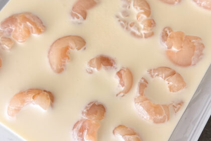 • Mix cassava, sugar, tapioca starch, water, vanilla and salt.