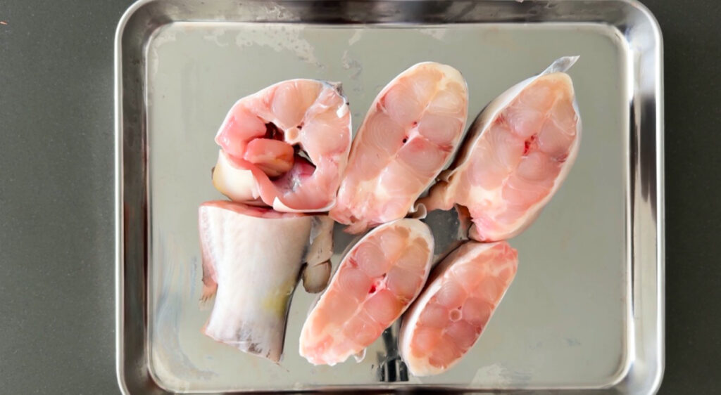 - 1.5 lb catfish steaks, cut into 2-inch pieces (skin-on preferred)