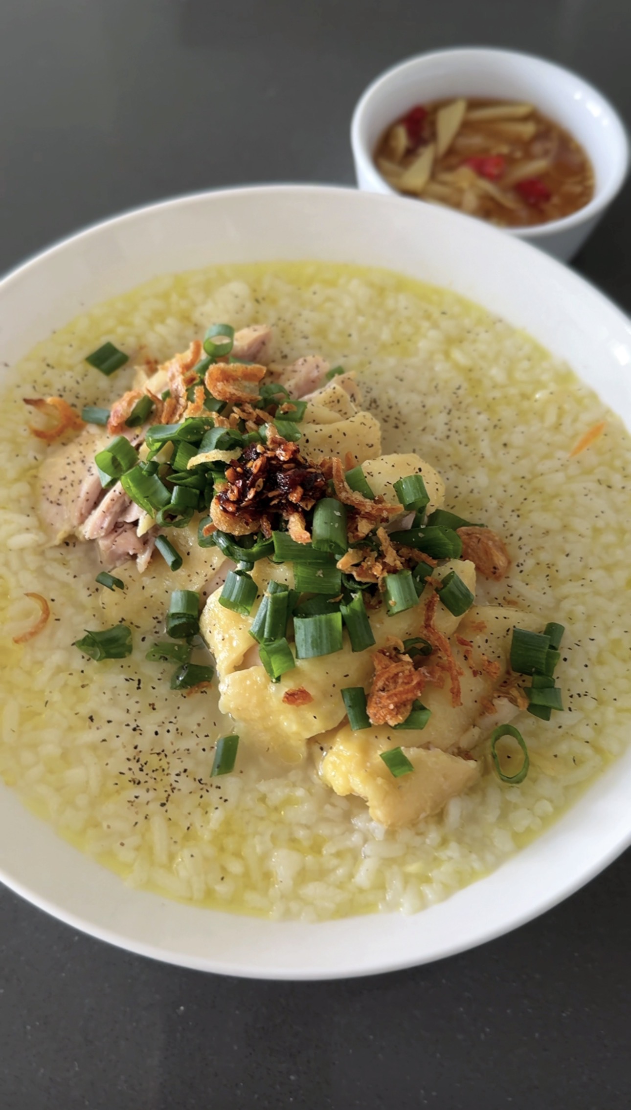 If you’re not familiar with cháo, think of it as a rice porridge — something somewhere between soup and oatmeal in texture. It’s simple, nourishing, and deeply comforting. In Vietnamese cooking, cháo shows up in a lot of forms, but chicken congee is probably one of the most familiar.