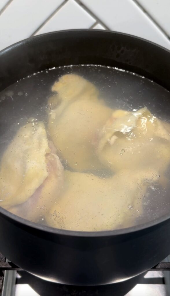 Chicken thighs are ideal here. They’re affordable, flavorful, and release a lot of richness into the broth.