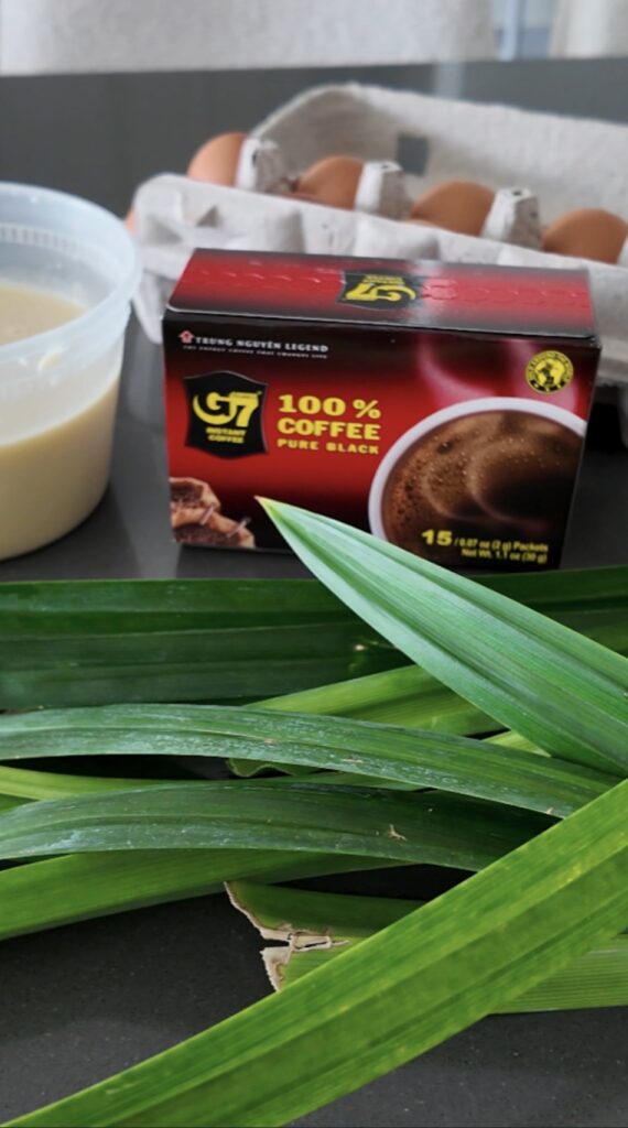 Pandan (lá dứa) is often called the “vanilla of Southeast Asia.” It has this floral, grassy, nutty aroma that pairs beautifully with creamy desserts and drinks. Adding pandan to egg coffee turns the cream layer into something tropical and refreshing — almost like a pandan custard floating on top of your iced espresso.