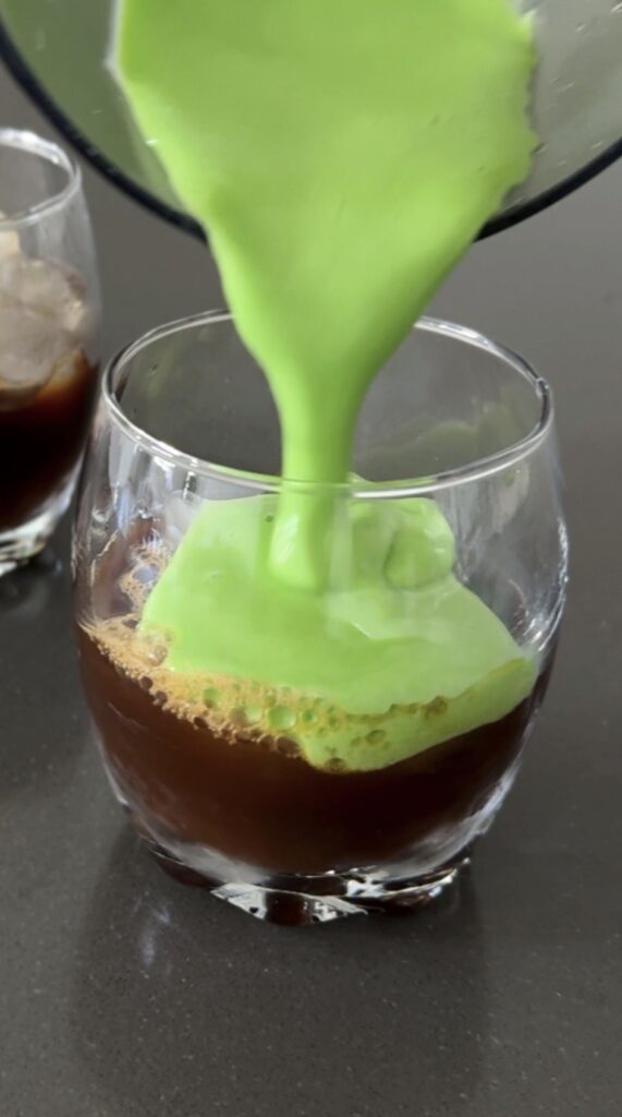 Pouring Pandan Cream into Coffee
